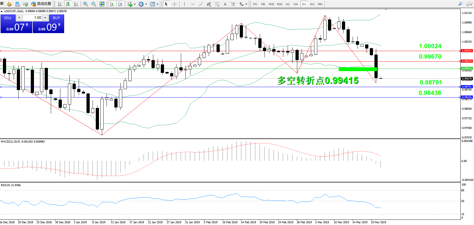 美元兑瑞郎刚刚触及0.9900关口美联储的温和程度超出市场预期,对美元造成了影响。美联储2019年不加息的决定尤其鸽派。但美联储仍表示将继续支持经济增长,这降低了未来几个月降息的可能性。止于结束缩表的时间,9月份仍是预期的早期阶段。