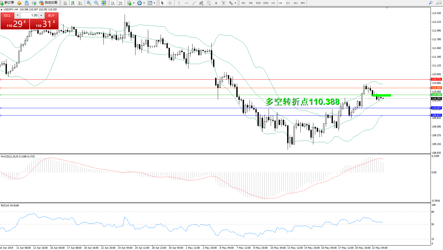 交易策略:110.388下方看跌,目标110.057109.872