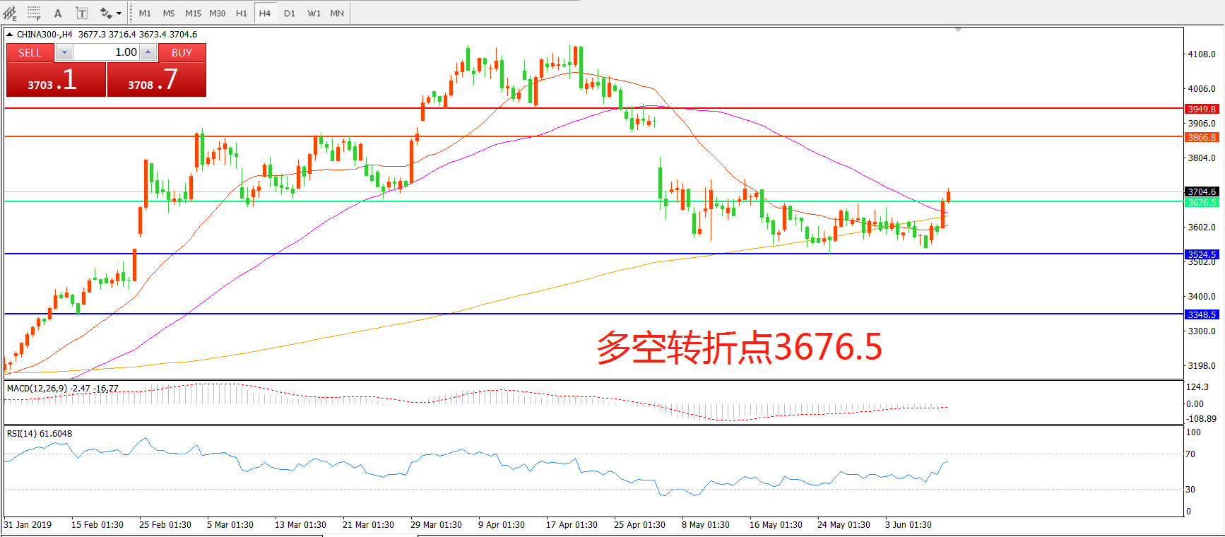 沪深300指数CHINA300 4小时图