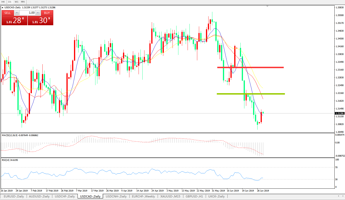 美元兑加元USDCAD    日线图: