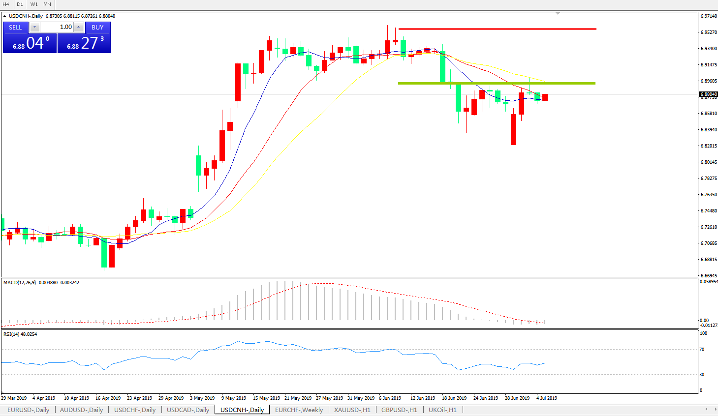 备选策略: 在6.9000之上,看涨,目标价位为6.9600,然后为6.9800。