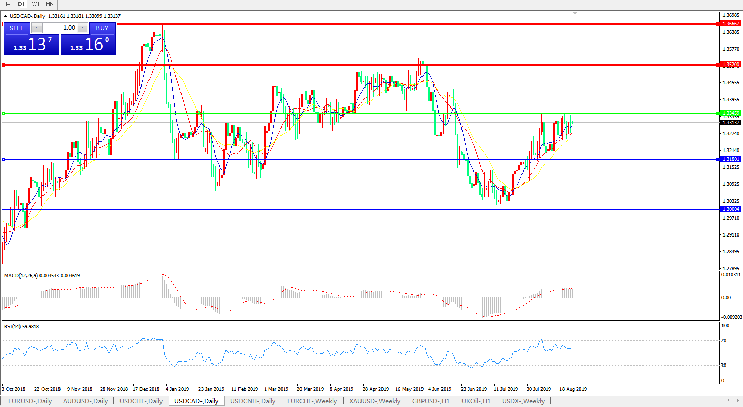 交易策略:1.3345之下,看跌,目标价位为1.3180,然后为1.3000。