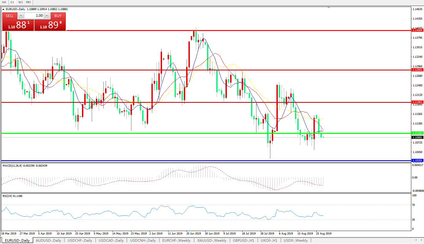 交易策略:1.1100下方看跌,目标1.1020、1.0800