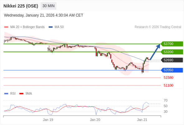 在 52050 之上,看涨,目标价位为 53200 ,然后为 53700 。