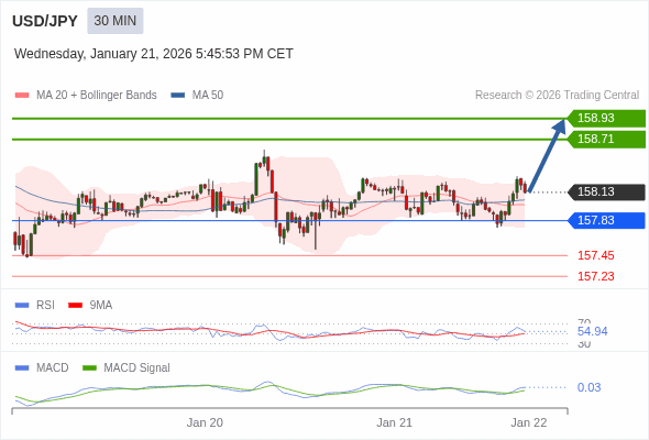 美元/日元 当日内 : 看涨,当 157.83 为支撑位。