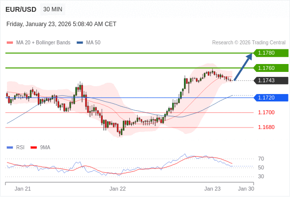 在 1.1720 之上,看涨,目标价位为 1.1760 ,然后为 1.1780 。
