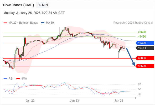 在 49300 之下,看跌,目标价位为 48850 ,然后为 48620 。