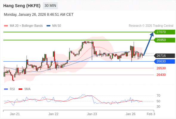 在 26630 之上,看涨,目标价位为 26950 ,然后为 27070 。