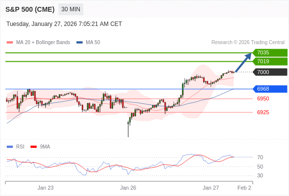 在 6968 之上,看涨,目标价位为 7019 ,然后为 7035 。