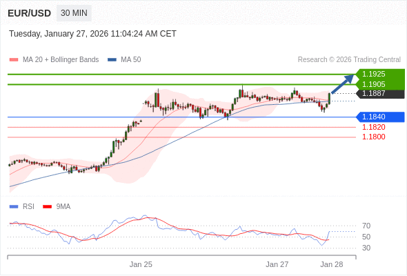 在 1.1840 之上,看涨,目标价位为 1.1905 ,然后为 1.1925 。