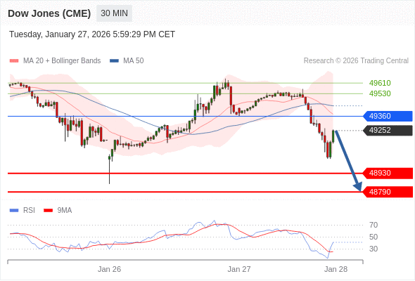 在 49360 之下,看跌,目标价位为 48930 ,然后为 48790 。