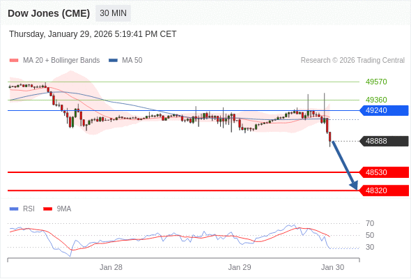 在 49240 之下,看跌,目标价位为 48530 ,然后为 48320 。