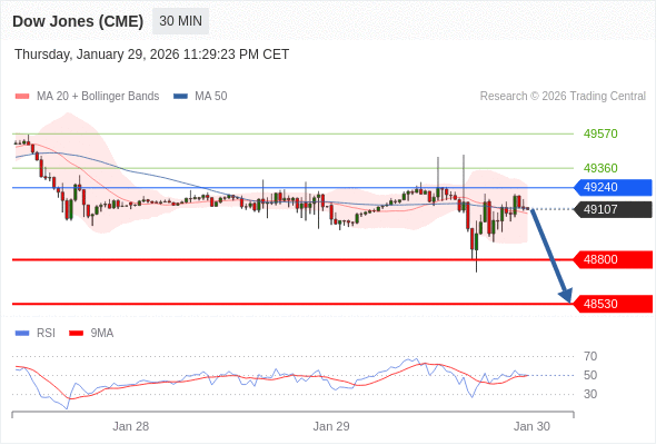 在 49240 之下,看跌,目标价位为 48800 ,然后为 48530 。