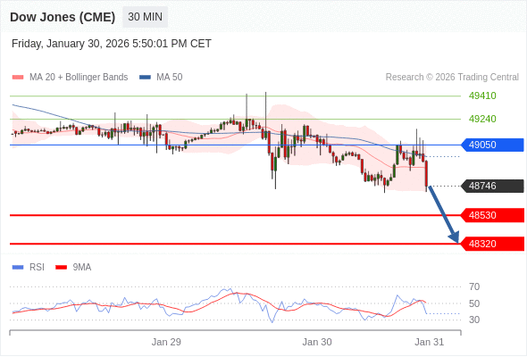 在 49050 之下,看跌,目标价位为 48530 ,然后为 48320 。