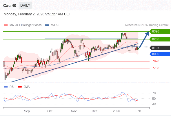 在 8000 之上,看涨,目标价位为 8260 ,然后为 8396 。
