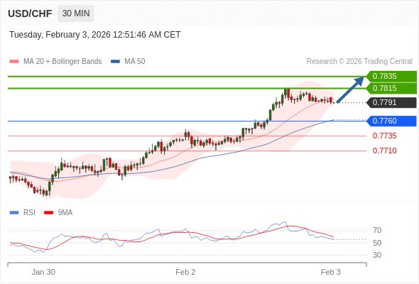 在 0.7760 之上,看涨,目标价位为 0.7815 ,然后为 0.7835 。