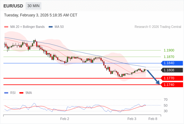 交易策略: 在 1.1840 之下,看跌,目标价位为 1.1770 ,然后为 1.1740 。