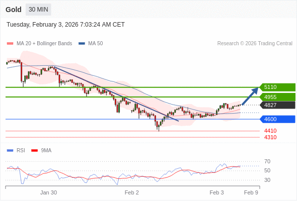 在 4600 之上,看涨,目标价位为 4955 ,然后为 5110 。