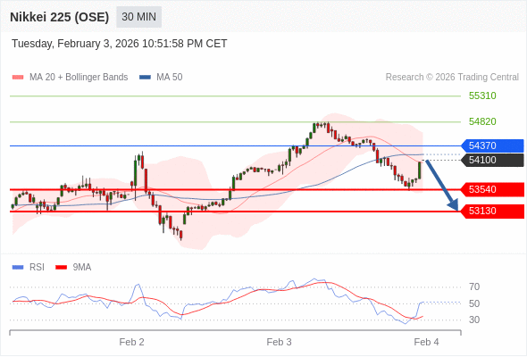 在 54370 之下,看跌,目标价位为 53540 ,然后为 53130 。