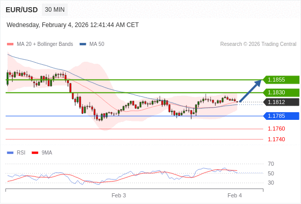 在 1.1785 之上,看涨,目标价位为 1.1830 ,然后为 1.1855 。