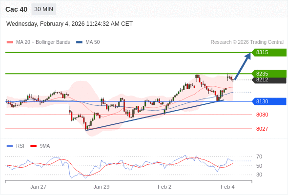 Cac 40 当日内: 新一轮上升。