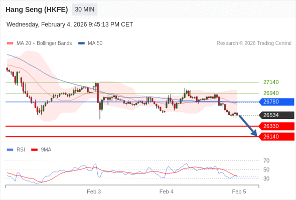 在 26780 之下,看跌,目标价位为 26330 ,然后为 26140 。