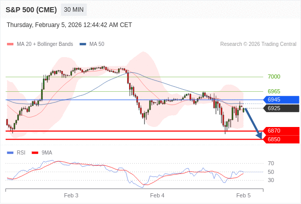 交易策略: 在 6945 之下,看跌,目标价位为 6870 ,然后为 6850 。