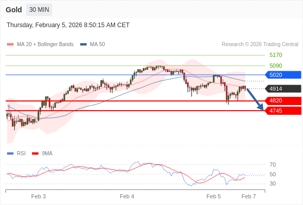交易策略: 在 5020 之下,看跌,目标价位为 4820 ,然后为 4745 。