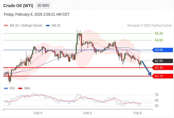在 63.85 之下,看跌,目标价位为 62.40 ,然后为 61.70 。