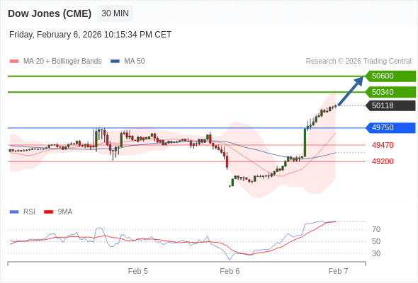 在 49750 之上,看涨,目标价位为 50340 ,然后为 50600 。