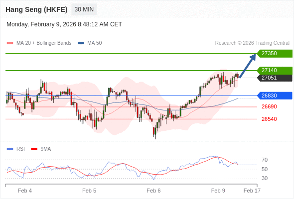 在 26830 之上,看涨,目标价位为 27140 ,然后为 27350 。