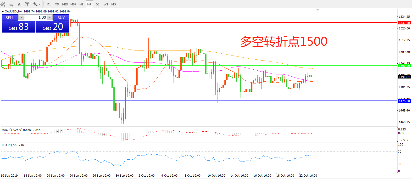 多空转折点:1500.00