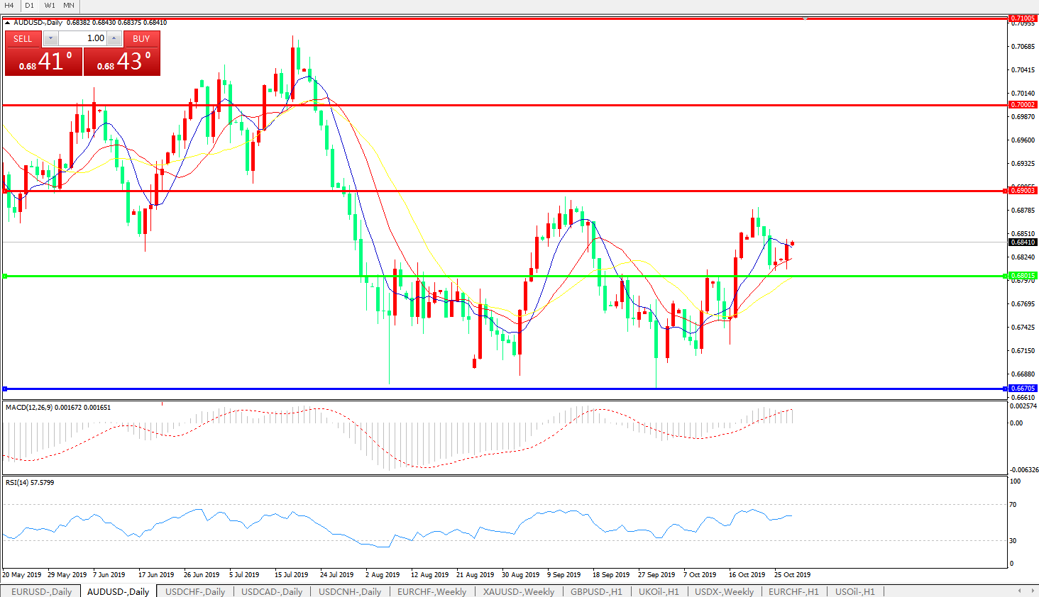 交易策略:0.6800上方看涨,目标0.6900、0.7000