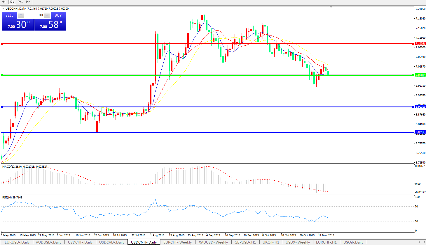 交易策略: 在7.0000之上,看涨,目标价位为7.1000,然后为7.2000。