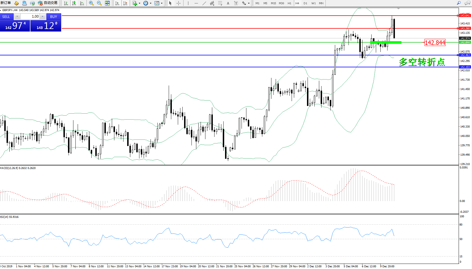 交易策略:142.844上方看涨,目标143.260、143.641