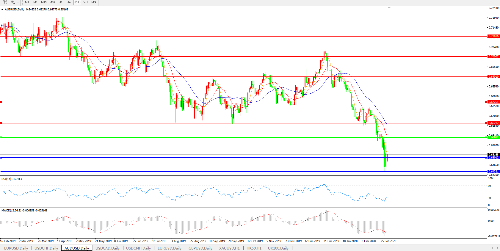 澳元兑美元AUDUSD    日线图: