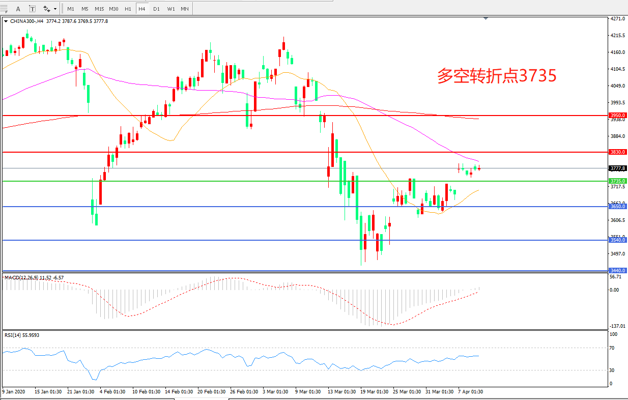 沪深300  CHINA 300   4小时图