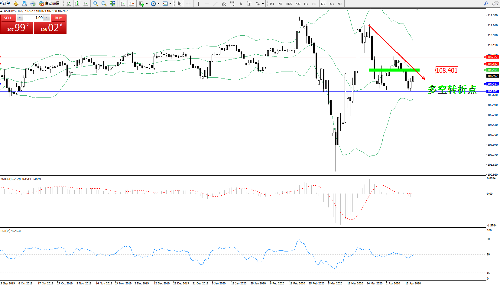 美元兑日元上涨约0.43%,报107.92;此前一度跌至107.17,美元指数上冲100大关遇阻,市场风险偏好情绪此起彼伏,一方面美元荒担忧犹在,另一方面美国经济在持续恶化,而日元避险作用也一直没有发挥出来,日本首相安倍晋三宣布将紧急状态令扩散至全国直至56日。并称,将调整一项补充预算草案,考虑为每位居民发放10万日元现金。国际货币基金组织驻日本首席代表布雷克(Odd Per Brekk)称,“在短期内,有必要采取扩张性财政政策来减轻新冠疫情的影响,并支持随后的经济复苏。”
