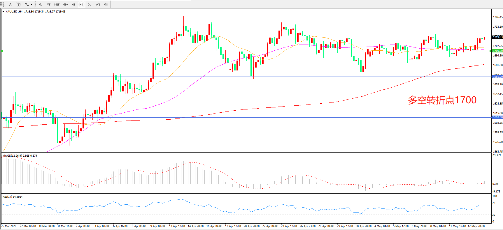 多空转折点:1700.00