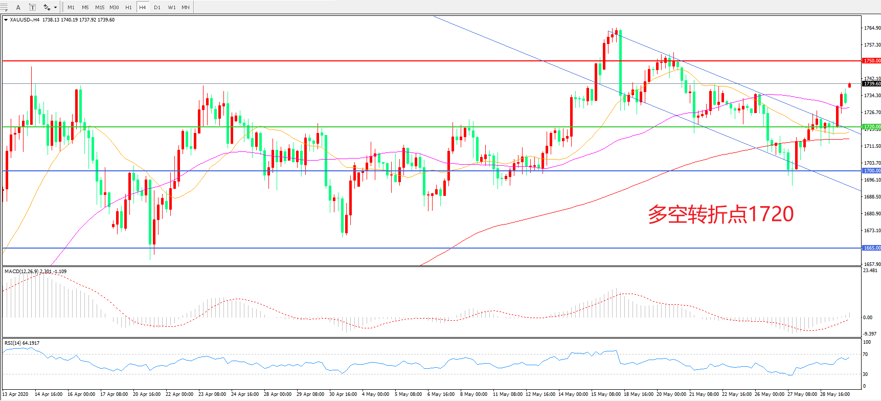 多空转折点:1720.00