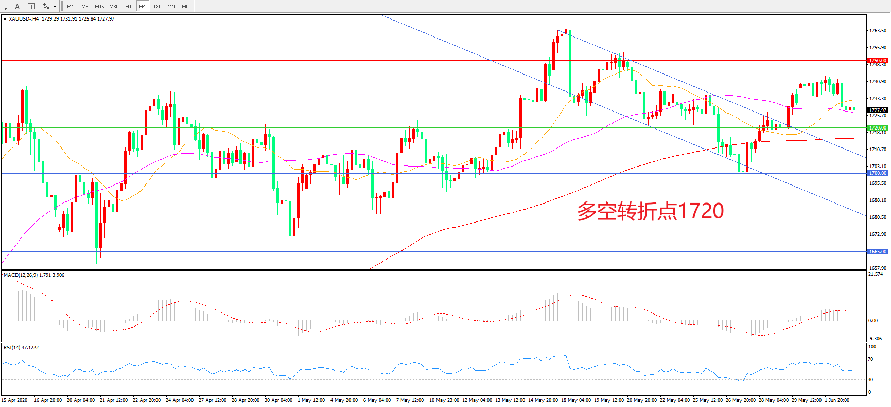 多空转折点:1720.00