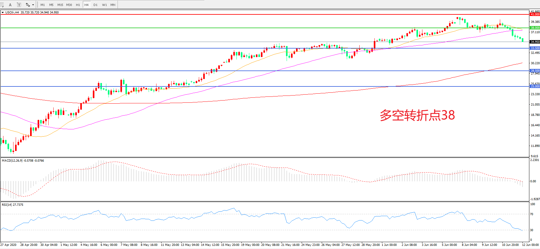 交易策略:在38.00之下看跌,目标33.50        28.50
