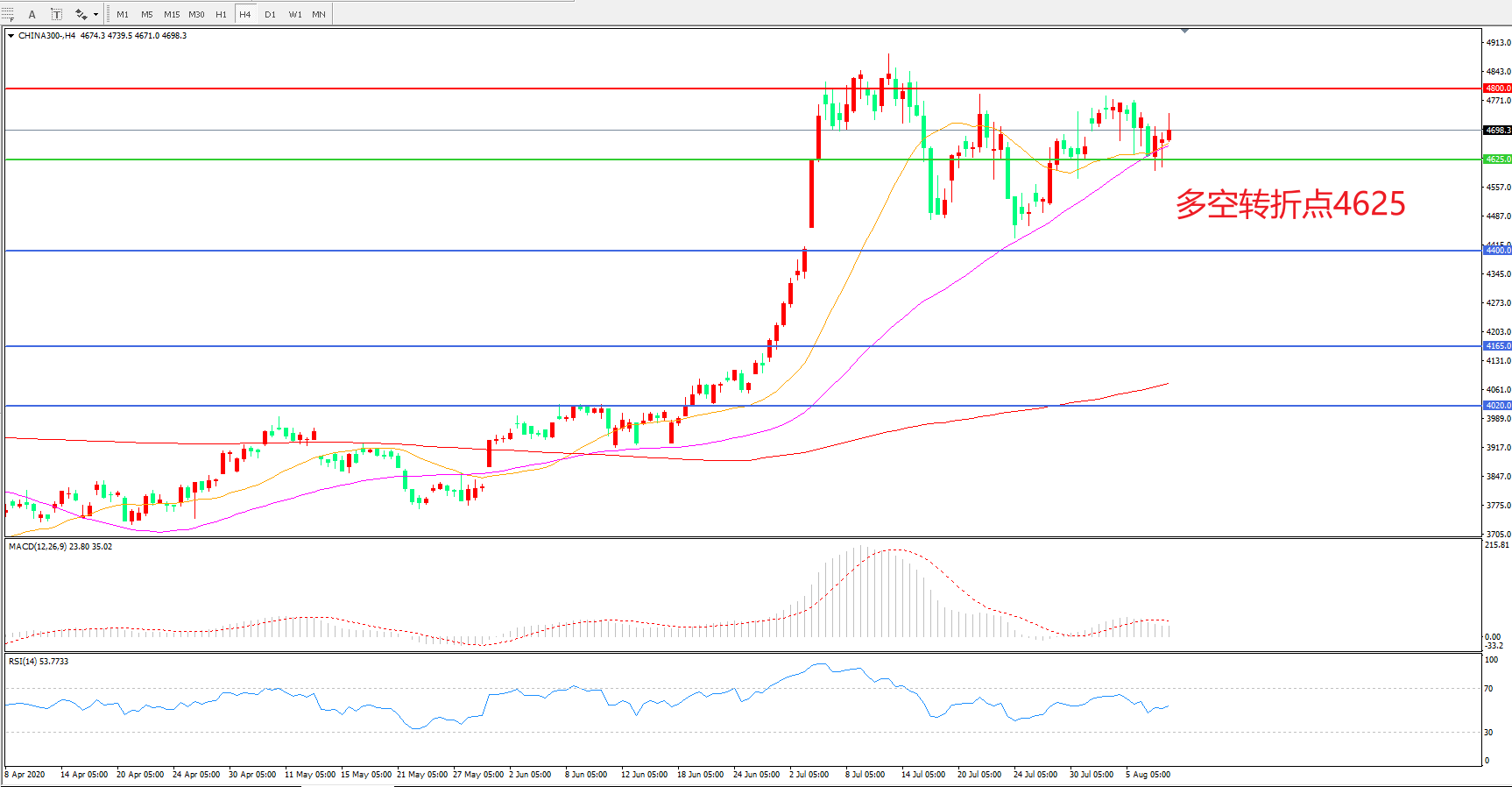 多空转折点:4625.00