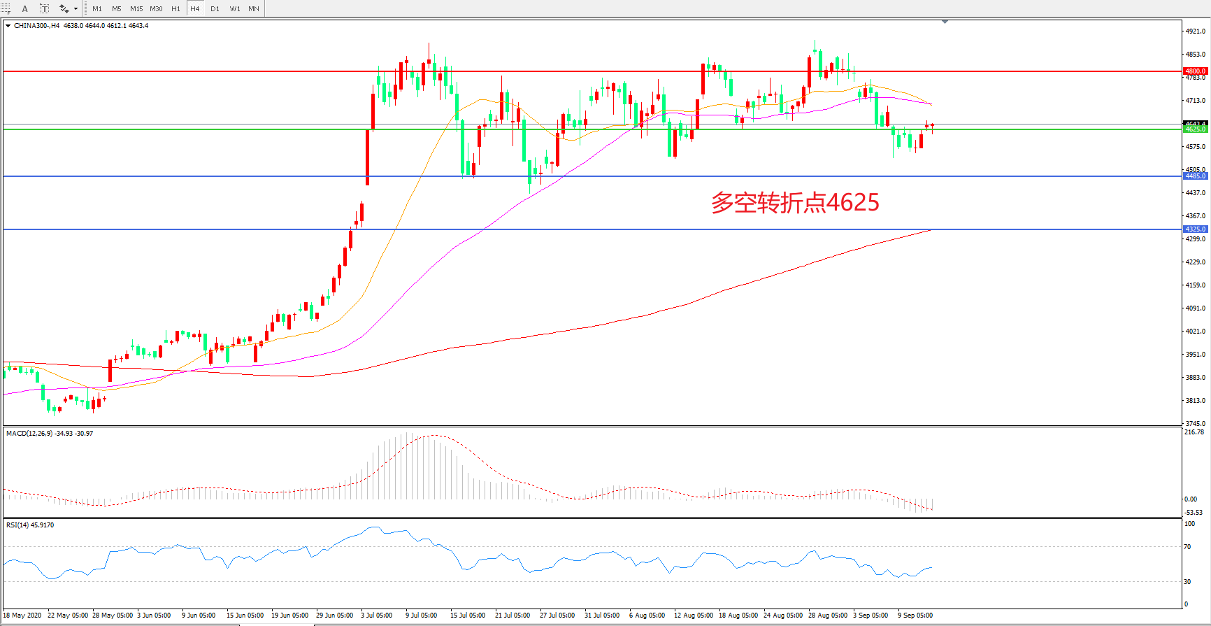 多空转折点:4625.00