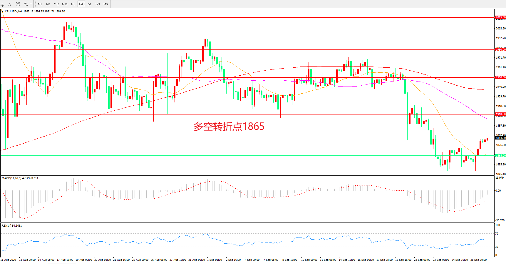 多空转折点:1865.00
