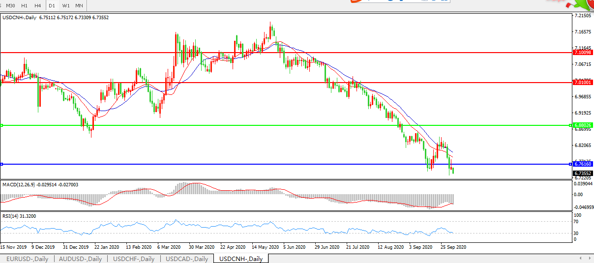 美元兑人民币USDCNH    日线图: