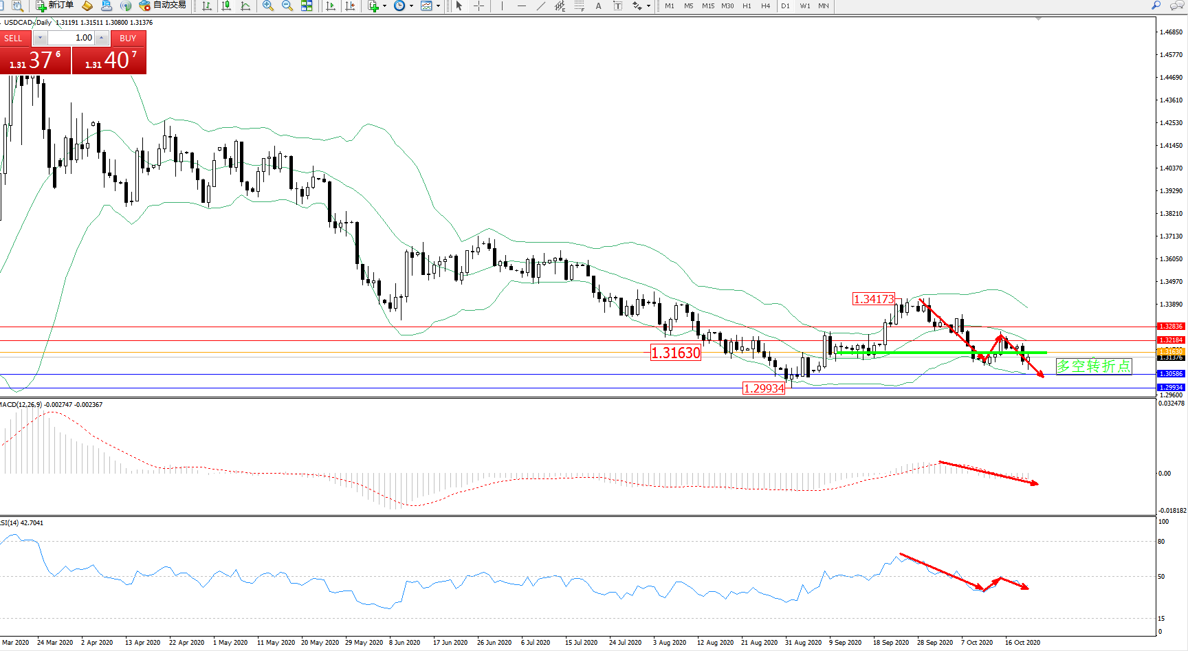 美元加元USDCAD——日K线图显示: