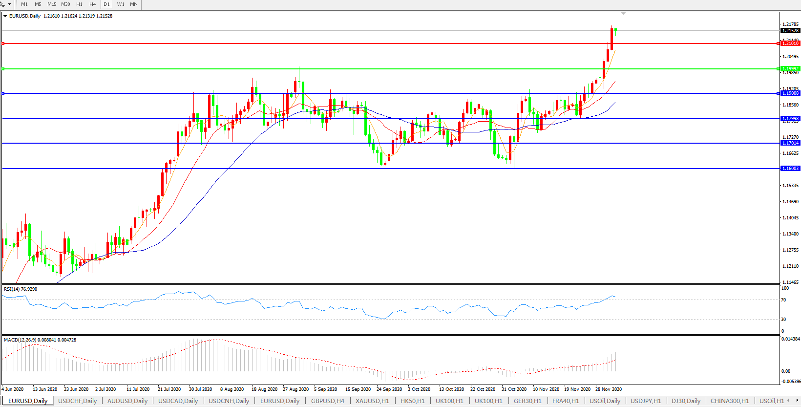 欧元兑美元EURUSD   日线图: