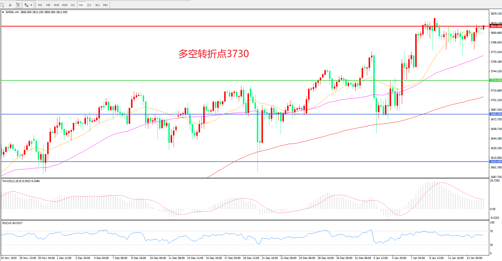 多空转折点:3730.00