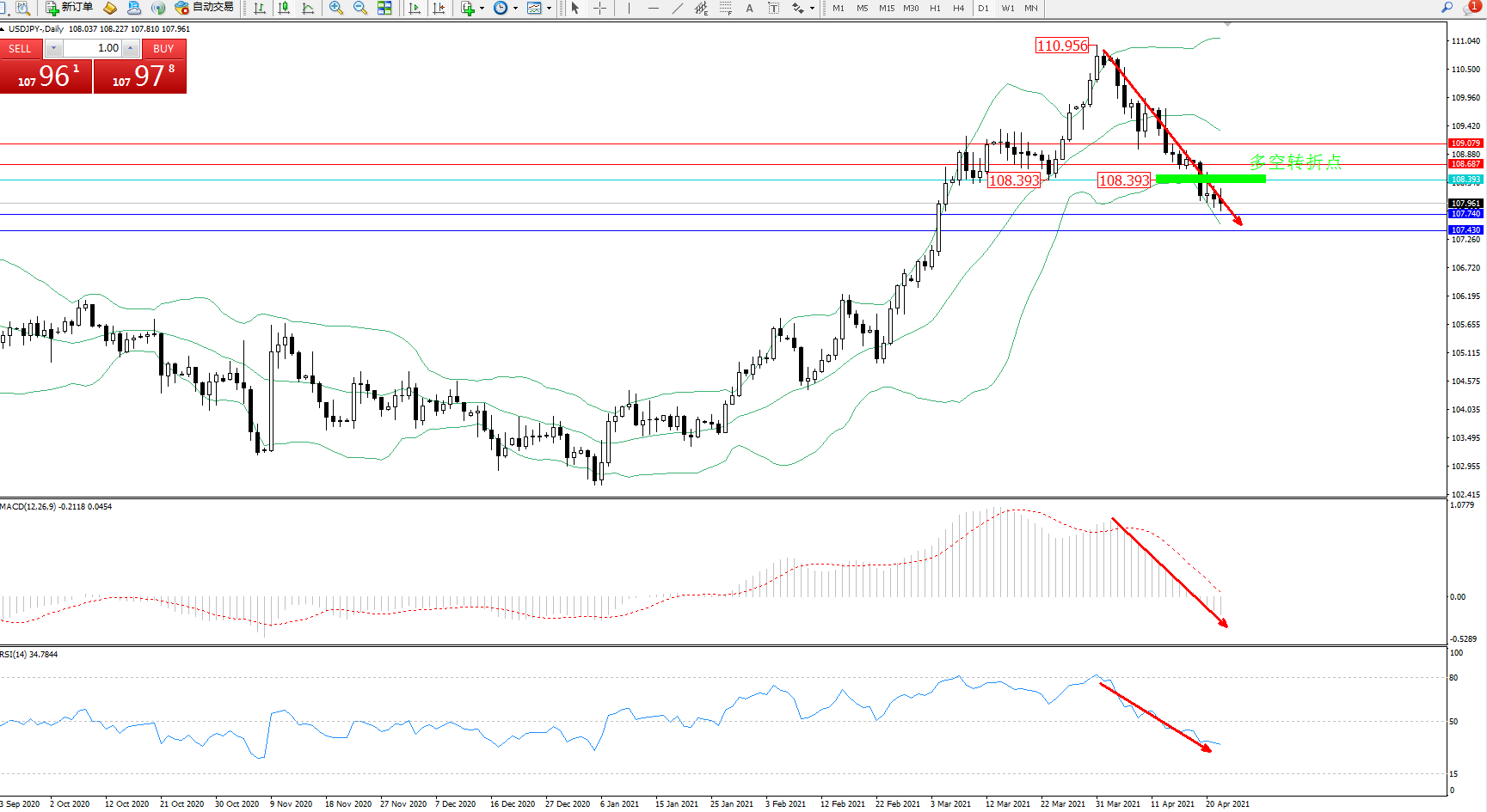 多空转折点:108.393